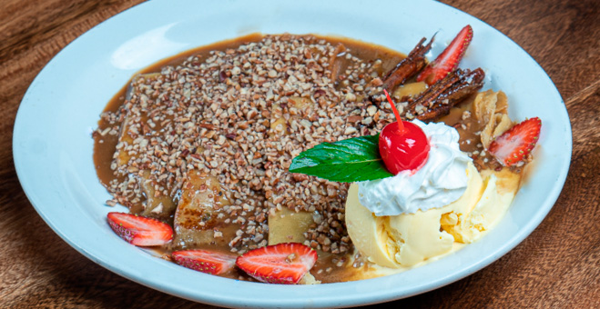 | PANQUEQUE CON HELADO DE VAINILLA (RELLENO DE PLÁTANO) |